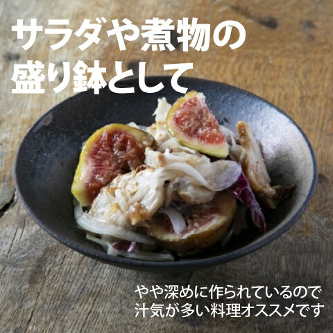 こちらは「平鉢 黒S」を使用したイメージ画像です 煮物やサラダなど汁気のあるおかずにぴったりの平鉢です。